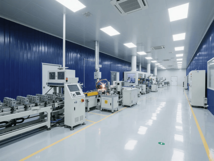 車(chē)間采用模塊化潔凈室結(jié)構(gòu),墻體采用50mm厚深藍(lán)抗菌彩鋼板,接縫處采用圓弧處理工藝。自動(dòng)化沖壓線與激光焊接工作站呈U型交替布局,工作站間設(shè)置深灰不銹鋼傳遞窗,確保物料流轉(zhuǎn)潔凈度。吊頂系統(tǒng)配置FFU高效過(guò)濾單元,維持≥20次/h換氣次數(shù),氣流組織采用頂送側(cè)回模式。