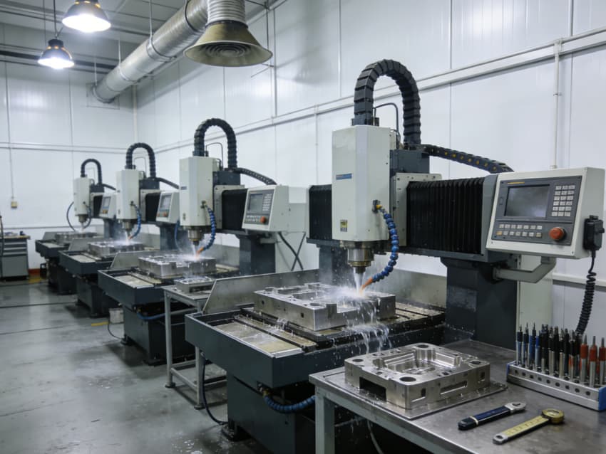 白色墻面采用工業(yè)級(jí)潔凈涂層,無縫拼接搭配圓弧陰陽角設(shè)計(jì),杜絕積塵死角,減少粉塵對(duì)模具精度的影響。車間劃分加工區(qū)、檢測(cè)區(qū)、調(diào)試區(qū)等功能區(qū)域,布局科學(xué)合理,加工區(qū)增設(shè)阻尼減震墊層降低設(shè)備振動(dòng)干擾,檢測(cè)區(qū)預(yù)留精密儀器安裝位與恒溫調(diào)控接口,各區(qū)域均配備標(biāo)準(zhǔn)化管線預(yù)埋與設(shè)備固定點(diǎn)位,全方位保障模具制造的精準(zhǔn)性與穩(wěn)定性。