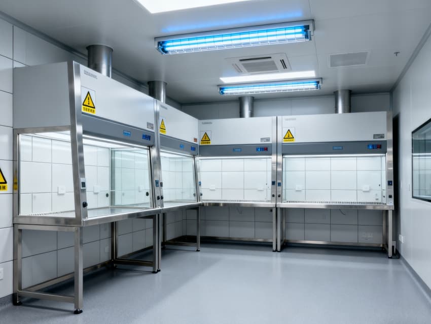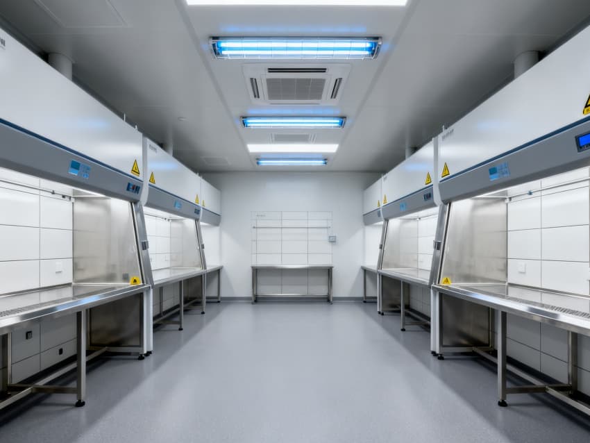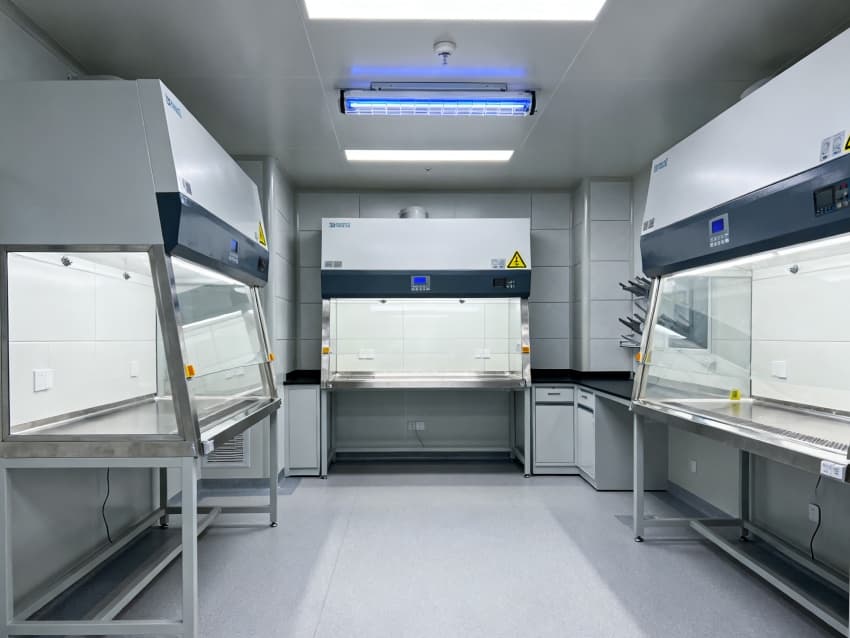 潔凈度執行萬級標準(ISO8級),配置生物安全型空氣凈化系統,確保每小時20次空氣置換與99.99%微粒過濾效率。