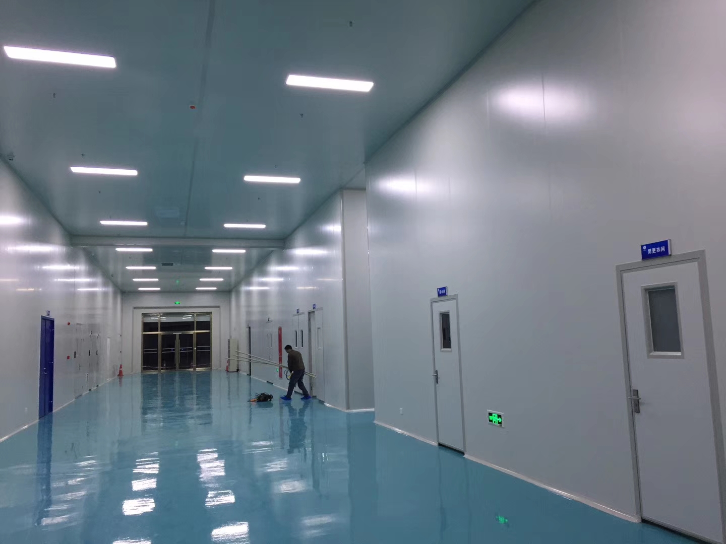 2、更衣室、風淋室、凈化間是車間凈化系統的三個基本組成部分。風淋室是進出潔凈區劃的通道,用噴出的高速潔凈氣流,有效迅速清除人體所帶的塵埃及細菌。凈化間采用夾層彩鋼板隔離空間或墻壁,上部彩鋼天花吊頂,地板用環氧樹脂鋪成。