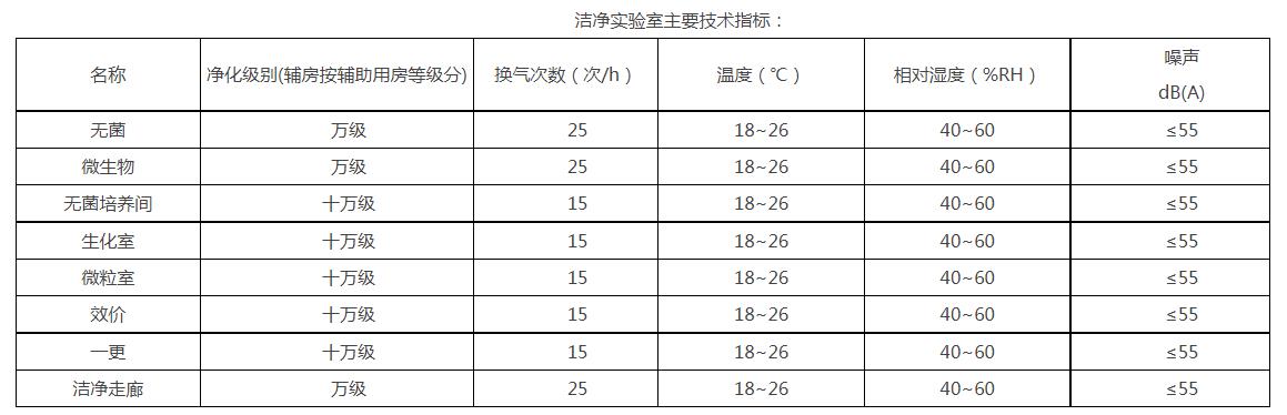 一、具體要求:1、設置要求:無菌室、微生物、培養(yǎng)間、菌落計數(shù)、潔物暫存及配套用房凈化級別為萬級,一更、微粒室、效價室、緩沖室凈化級別為十萬級,其余房間無凈化級別。2、凈化實驗室裝飾裝修工程、凈化空調工程、電氣工程的設計和安裝。區(qū)域內的實驗室結構、凈化裝修、凈化空調及自動控制系統(tǒng)、供電照明、弱電系統(tǒng)。