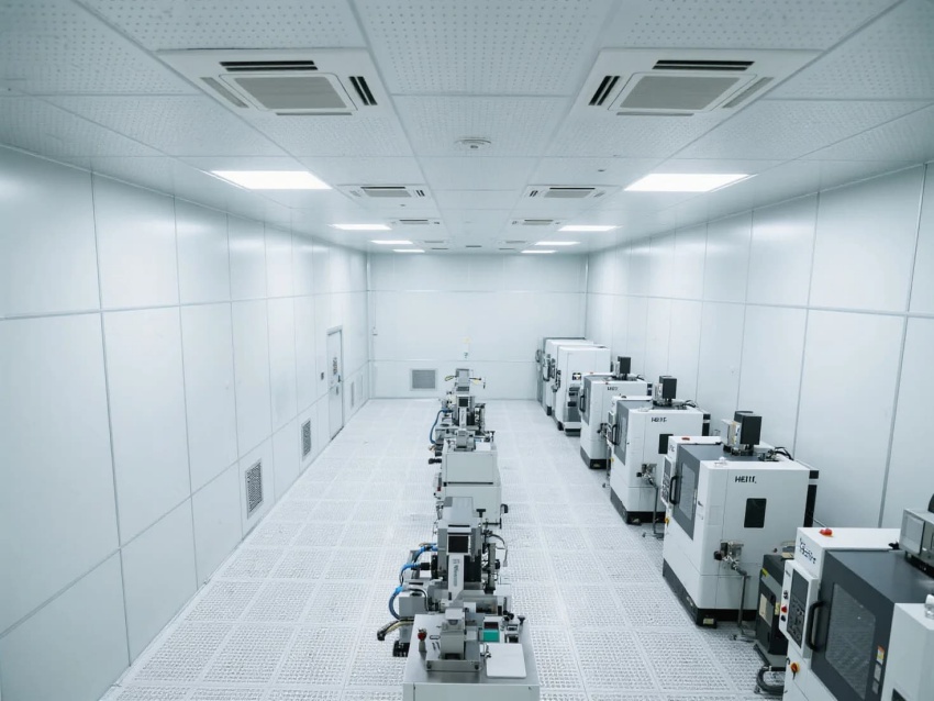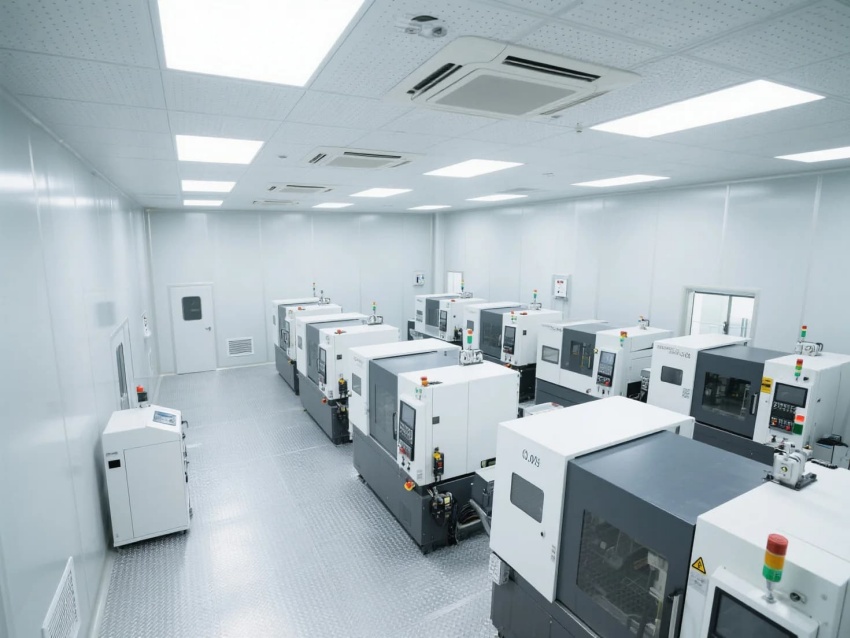 模塊化功能單元:劃分微米級(jí)加工區(qū)(黃光照明)、光學(xué)檢測(cè)區(qū)(黑箱設(shè)計(jì))、物料緩存區(qū)(負(fù)壓隔離)