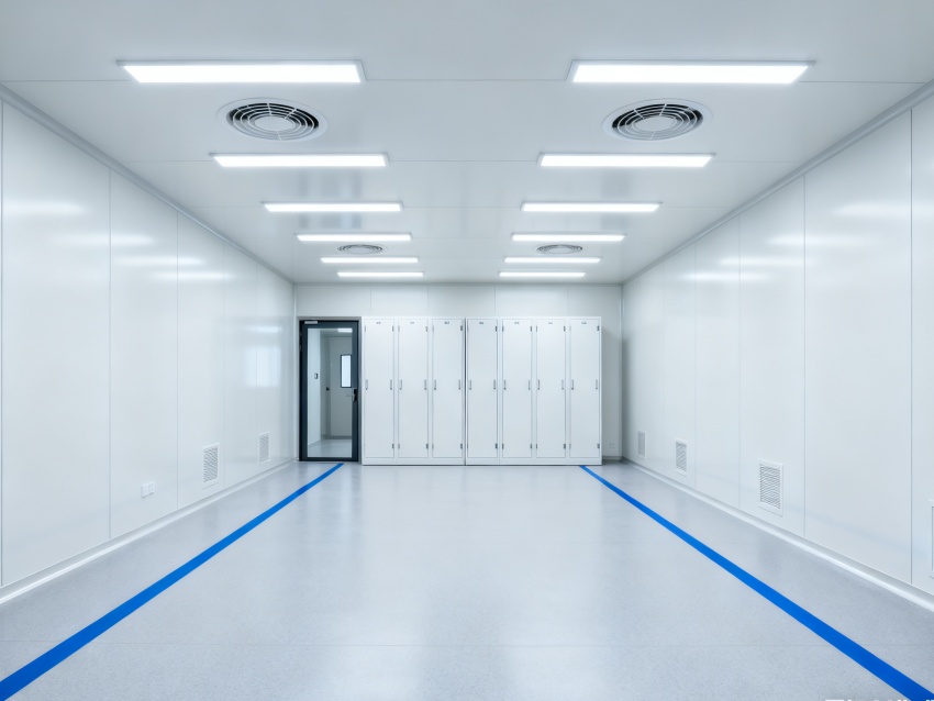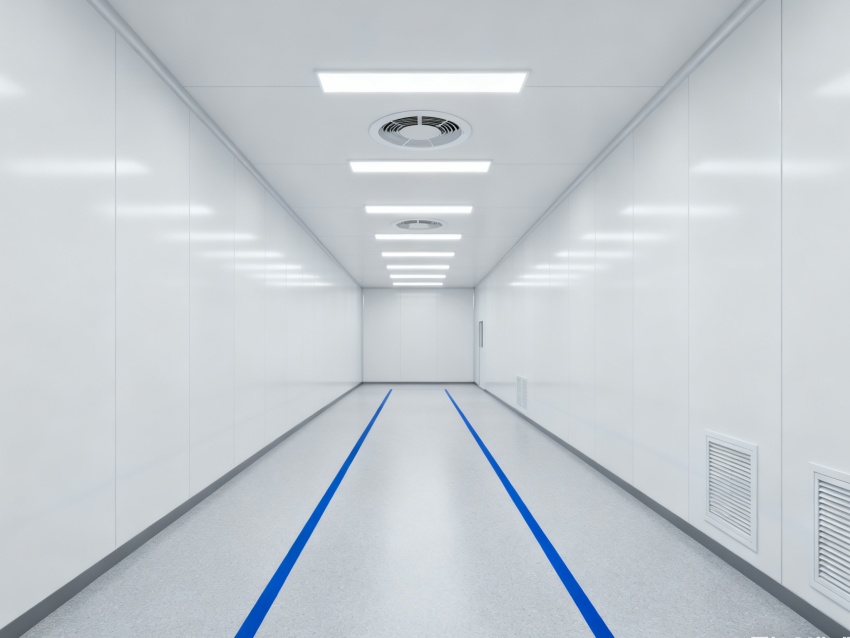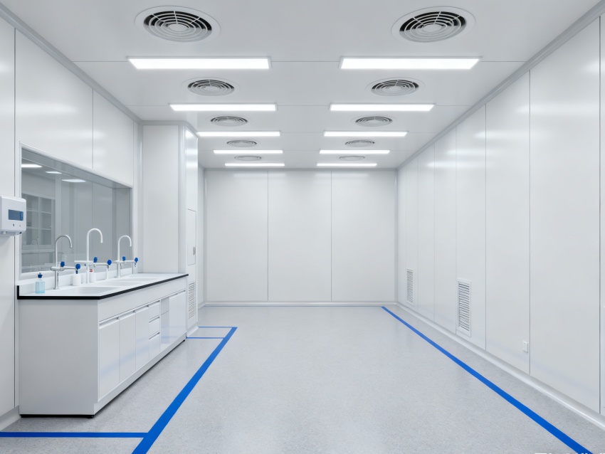 實驗室潔凈度嚴(yán)格遵循萬級標(biāo)準(zhǔn)(ISO8級),每立方米空氣中≥0.5μm微粒數(shù)≤352000個,采用初效-中效-高效三級空氣過濾系統(tǒng),配合垂直層流送風(fēng)設(shè)計,實現(xiàn)每小時20-25次空氣置換。室內(nèi)墻面采用耐腐蝕潔凈彩鋼板,地面為PVC無菌卷材,所有接縫做密封處理;溫度控制在22±2℃、相對濕度50±5%RH,部分區(qū)域維持5-8Pa負(fù)壓,有效防止交叉污染,符合生物安全實驗室建設(shè)規(guī)范。
