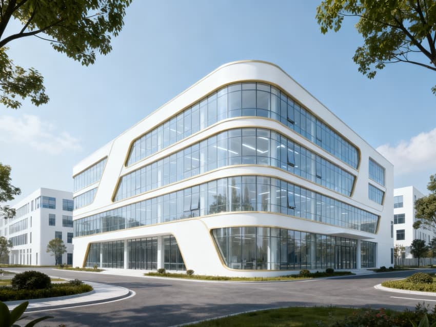 本項目為安徽美妝產業升級核心載體,聚焦護膚品、彩妝等產品生產需求,兼顧化妝品GMP潔凈標準與江淮地區防潮防霉要求。外立面采用淺白節能幕墻+通透玻璃設計,契合安徽產業園區清新簡約風格,同時阻隔外部粉塵與濕氣,保障內部潔凈環境穩定。?