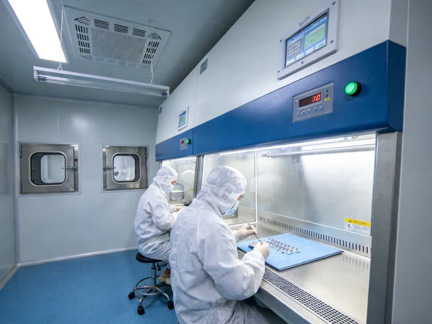 白色墻面采用食品級無菌抗菌涂層,推行無縫拼接與高精度找直工藝,陰陽角采用R50圓弧倒角設(shè)計,徹底消除清潔死角,潔凈度穩(wěn)定達(dá)到Class 7級以上標(biāo)準(zhǔn)。廠房科學(xué)劃分無菌裝配區(qū)、生物安全區(qū)、精密檢測區(qū)等核心區(qū)域,各區(qū)域配備獨(dú)立層流凈化與負(fù)壓隔離系統(tǒng),裝配區(qū)預(yù)留恒溫恒濕精準(zhǔn)調(diào)控接口,檢測區(qū)設(shè)置無菌觀察窗口與專用物料傳遞通道,全方位保障生產(chǎn)全流程的生物安全性與合規(guī)性,筑牢植入性醫(yī)療器械高品質(zhì)生產(chǎn)根基。
