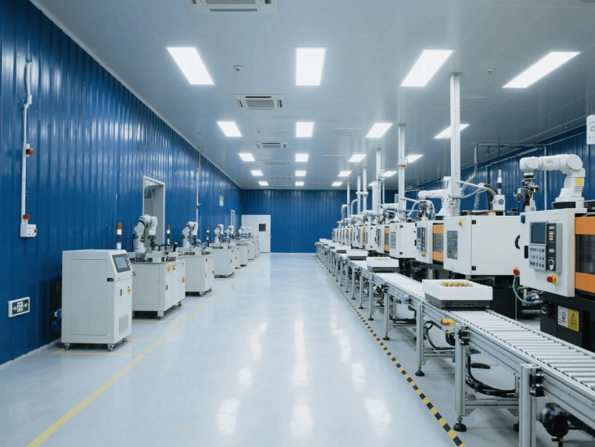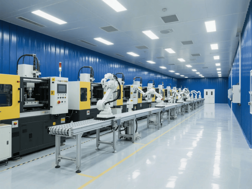 功能布局:原料區(qū)-注塑成型-檢測包裝呈U型流水線布局,工作站間設置快速傳遞窗。整體設計通過工業(yè)級材料與智能管控系統(tǒng)的結合,實現(xiàn)潔凈生產與高效運營的雙重目標。