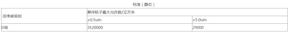 12、潔凈度靜態(tài)測試:在生產(chǎn)操作全部結(jié)束以后,全部操作人員撤出生產(chǎn)現(xiàn)場,經(jīng)20分鐘的自凈后,進(jìn)行空氣懸浮粒子的靜態(tài)檢測,并確定警戒限和糾偏限(分別暫定為法定標(biāo)準(zhǔn)的50%及80%)。制劑車間的潔凈級別為D級,在靜態(tài)情況下,靜態(tài)的標(biāo)準(zhǔn)為: