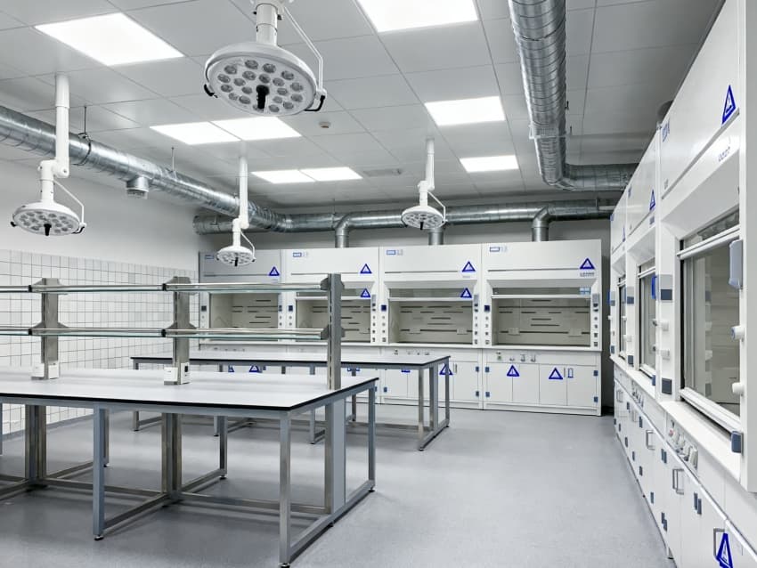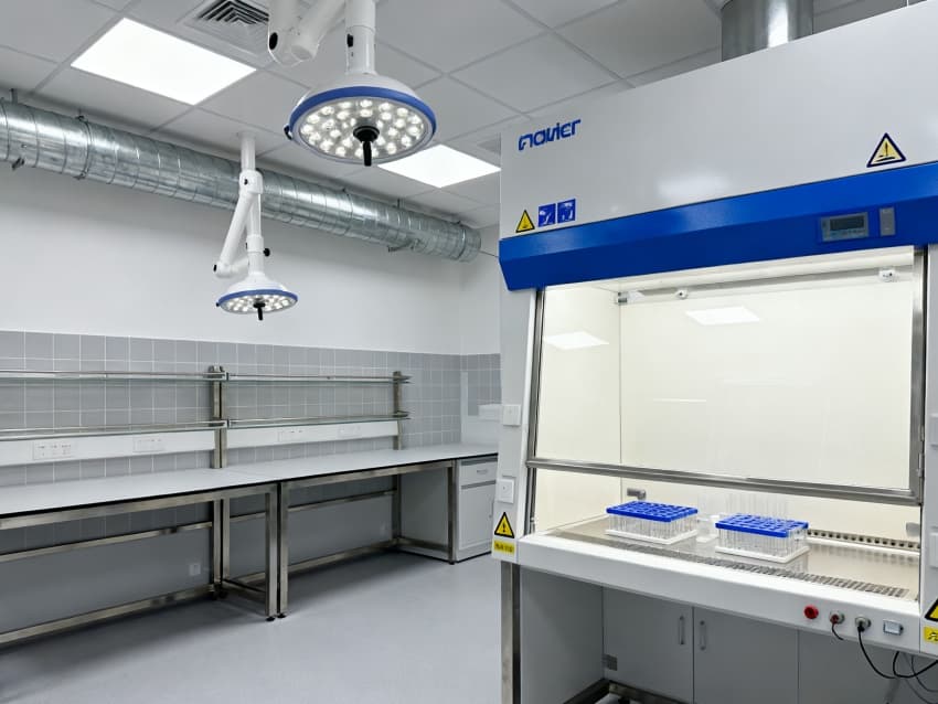 本生化研究實(shí)驗(yàn)室凈化工程嚴(yán)格遵循ISO7級潔凈標(biāo)準(zhǔn),將實(shí)驗(yàn)空間科學(xué)劃分為四大核心功能區(qū)域:樣品前處理區(qū)配備通風(fēng)櫥、震蕩儀等預(yù)處理設(shè)備,采用負(fù)壓設(shè)計(jì)防止交叉污染;試劑配制區(qū)設(shè)有獨(dú)立的天平室與超純水系統(tǒng),通過溫濕度智能調(diào)控系統(tǒng)將環(huán)境參數(shù)穩(wěn)定控制在±1℃與45%-60%RH;精密檢測區(qū)配置防震臺與電磁屏蔽裝置,可滿足高效液相色譜、質(zhì)譜儀等精密儀器的運(yùn)行需求;無菌操作區(qū)配備層流凈化工作臺與生物安全柜,配合動態(tài)浮游菌監(jiān)測系統(tǒng),確保實(shí)驗(yàn)環(huán)境達(dá)到百級潔凈度標(biāo)準(zhǔn)。各功能區(qū)通過氣密式緩沖間與機(jī)械互鎖傳遞窗形成物理隔離,構(gòu)建起三級防護(hù)屏障。在保障蛋白質(zhì)分離純化、核酸提取擴(kuò)增等常規(guī)實(shí)驗(yàn)高效開展的同時(shí),還專門設(shè)計(jì)了酶活性檢測專用恒溫恒濕實(shí)驗(yàn)室,采用獨(dú)立的凈化空調(diào)系統(tǒng)與UPS不間斷電源,可支持對環(huán)境參數(shù)高度敏感的高精度研究項(xiàng)目。此外,工程特別設(shè)置雙通道應(yīng)急處理系統(tǒng),包含緊急洗眼裝置、消防噴淋系統(tǒng)與防化物資儲備間,配合逃生路線熒光標(biāo)識與應(yīng)急照明系統(tǒng),全方位保障實(shí)驗(yàn)人員安全與科研數(shù)據(jù)完整。?