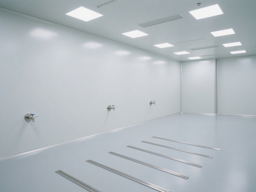 效果圖從不同視角展現空間優勢:正面視角呈現開闊的通透格局,無設備干擾更顯規整;角落特寫聚焦圓弧墻角與無縫拼接工藝,規避積塵死角;側視角度凸顯層流送風系統與高效過濾裝置,直觀傳遞潔凈技術核心;局部細節圖則清晰展示地面防滑紋理、墻面抗污涂層等實用設計。?