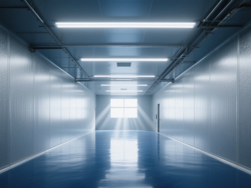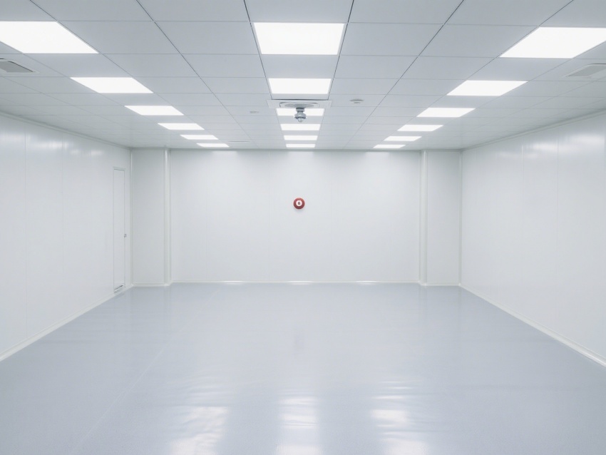 ADC醫藥研發生產車間內部采用灰色地面與白色墻壁的簡約統一風格,嚴格遵循GMP高級別潔凈規范,精準匹配抗體偶聯藥物研發生產的無菌、低污染嚴苛需求。灰色地面選用醫