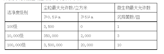 第一條 對生產環境有潔凈度要求的產品除應當滿足《體外診斷試劑生產實施細則》的通用要求外,其生產環境應當滿足本附錄的要求。不同的凈化級別區域控制標準參見以下表格: